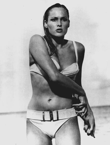 James Bond -elokuvien eräs ikimuistoisimmista kohtauksista nähtiin, kun Ursula Andress nousi vuonna 1962 vedestä kaikkien aikojen ensimmäisessä James Bond -elokuvassa Tohtori No. Andress nousi klassikkokohtauksessa salaisen agentin eteen merestä beigeissä bikineissä ja sukelluslasit kädessä.