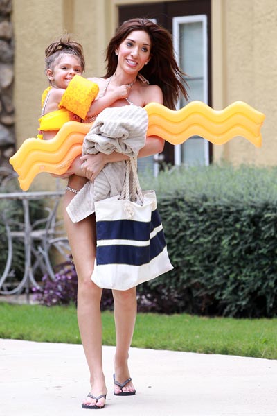 Äskettäin uudet muhkeammat silikonirinnat hankkinut teiniäiti ei ole muotojaan peitellyt, ja tällä kertaa hän poseeraakin uima-altaalla bikineissä. Hän paistatteli päivää Texasissa yhdessä tyttärensä Sophian kanssa ja pulahti välillä myös uimaan.