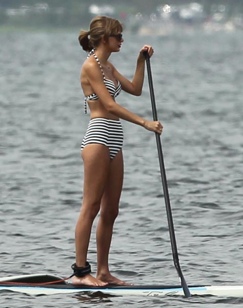 Parhaillaan Swift lomailee Massachusettsin osavaltiossa sijaitsevassa Foxborossa, jossa hänet kuvattiin sunnuntaina nautiskelemassa vesileikeistä. Bikiniasuinen Taylor liikkui nimittäin Bostonin liepeillä sijaitsevan kaupungin rannoilla melomassa surffilaudalla. Edellisenä iltana hänellä oli ollut konsertti läheisessä Westerlyn kaupungissa.