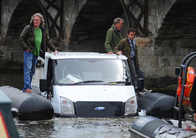 Viikonloppuna Top Gearin tiimi oli kuvaamassa uusia jaksoja Stratford-upon-Avonissa, jossa paikalle sattunut silminnäkijä kuvasi erikoisen menopelin. Ohjelman juontajat Jeremy Clarkson, James May ja Richard Hammond testasivat nimittäin joessa eräänlaista ilmatyynyaluksen ja pakettiauton yhdistelmää, ja veden pinnalla kiitäneen vekottimen kyljessä luki ”Hovervan”.