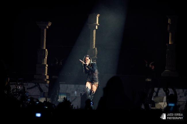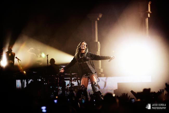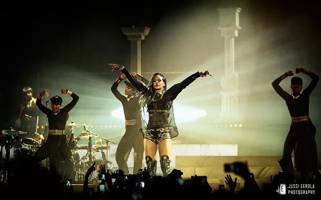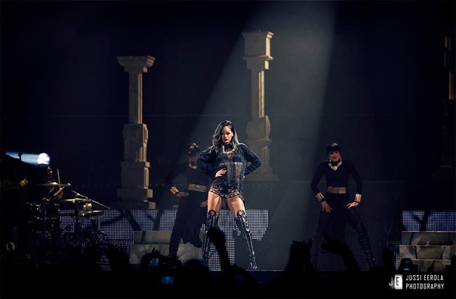 Stara oli mukana konsertissa ja tallensi esiintymisen tähtihetkiä valokuviksi. Rihanna järjesti suomalaiselle yleisölle tuttuun tapaansa seksiä tihkuvan show’n, josta ei hittejä ja paljasta pintaa puuttunut. Hartwall Areena oli loppuunmyyty, eli paikalla oli noin 12.000 katsojaa. Keikan biisilista löytyy alta.