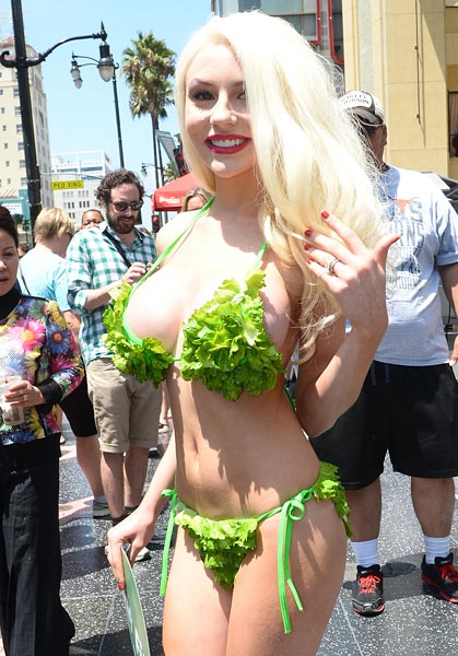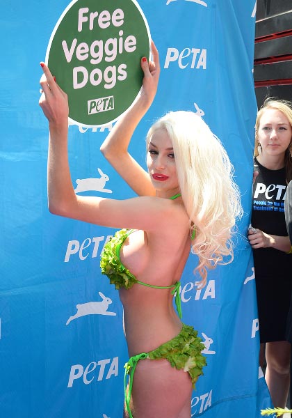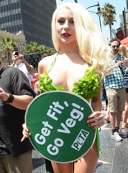 18-vuotias Courtney ja 53-vuotias Doug paljastivat viime viikolla, että he harrastavat seksiä enää kerran viikossa. Nyt Courtney on valjastanut uudet silikonirintansa hyvän asian puolesta, sillä hänet nähtiin eilen esittelemässä muotojaan vegetarismia markkinoineessa tilaisuudessa.