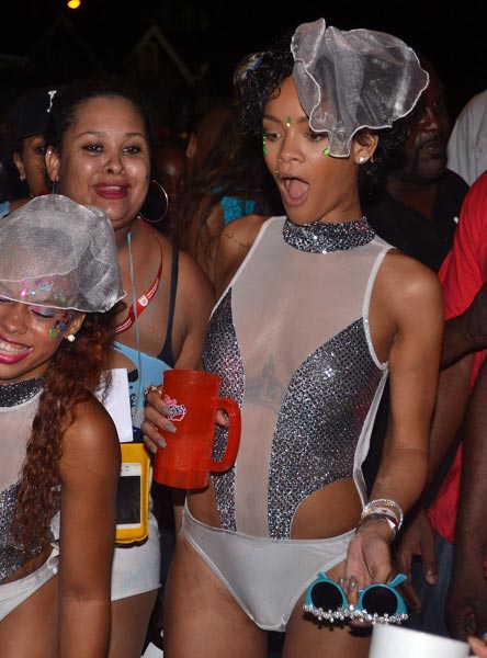 Tänä aamuna Rihanna kuvattiin juhlimassa kotimaassaan Barbadoksella, jossa hän osallistui The Foreday Morning Jam Party -tapahtumaan Bridgetownissa. Rihannan bileasu oli melko paljastava ja jopa rohkea, mutta muilla juhlijoilla asut olivat samaa sarjaa.