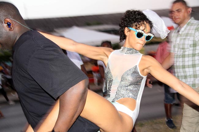 Viikonloppuna Rihanna on kuvattu juhlimassa railakkaasti Barbadoksella järjestettävillä karnevaaleilla, joissa popkaunotar biletti uikkareihin pukeutuneena.