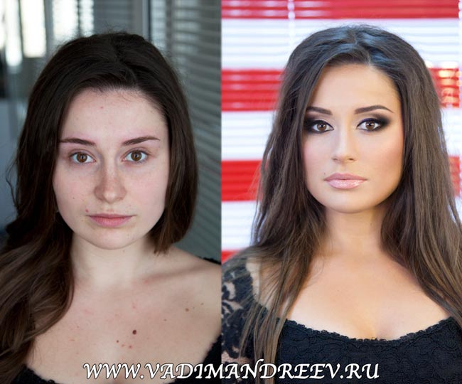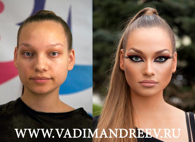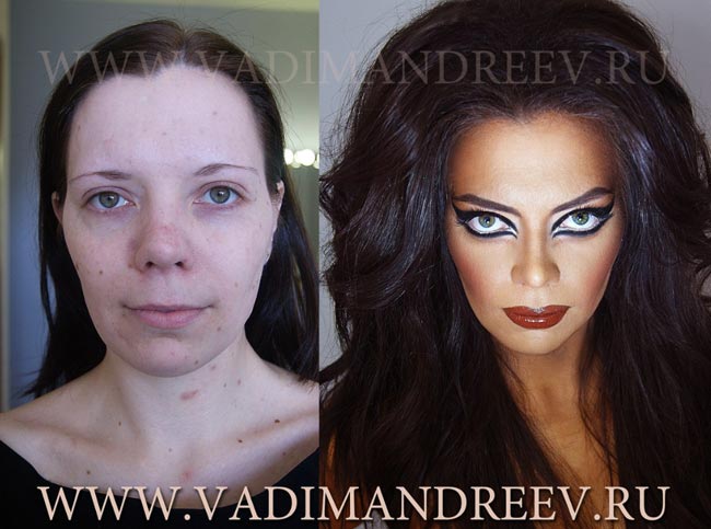 Vadim Andreevin mukaan oheisia kuvia ei ole käsitelty lainkaan digitaalisella kuvankäsittelyllä, vaan kaikki on tehty vain ja ainoastaan meikkaamalla. Taiteilijan kuvissa melko tavallisen näköisistä naisista sukeutuu kansikuvatason mallikaunottaria. Lisää Andreevin upeita töitä voi ihailla tästä linkistä.