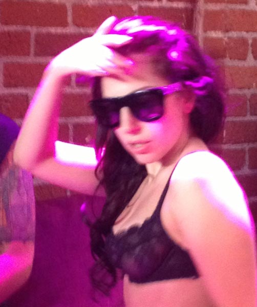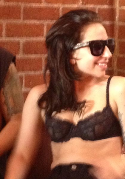 Hän oli nimittäin jättänyt paidan pukematta, eli juhli ystäviensä kanssa rintaliivit yllään. Muut juhlijat saivat ikuistettua poptähden asuineen myös valokuviin. Paikalla olleiden mukaan klubilla soitettiin myös yksi kappale Lady Gagan uudelta levyltä.