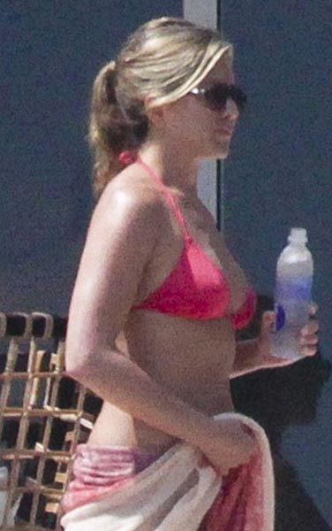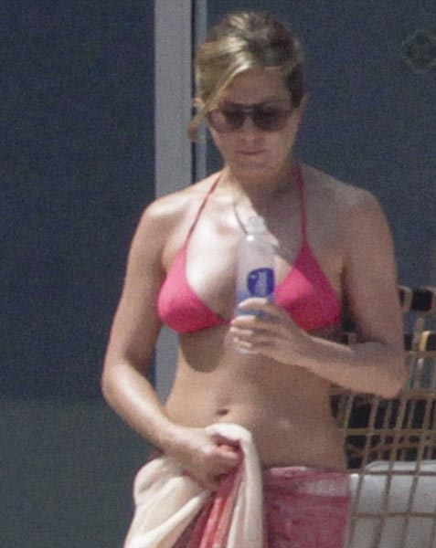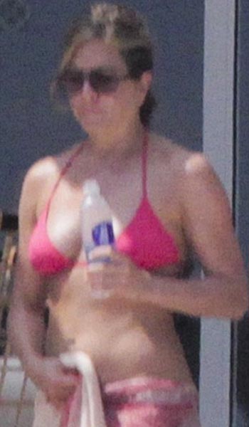 Jennifer ja Justin kuvattiin eilen nautiskelemassa aurinkolomasta Meksikossa, jossa Jennifer otti aurinkoa punaisissa bikineissä.