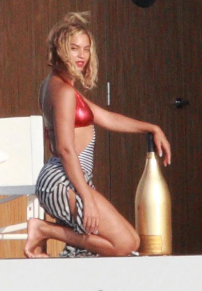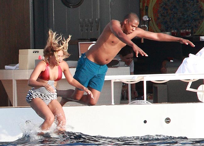 Nyt Beyonce on juhlinut 32-vuotispäiväänsä yhdessä miehensä Jay Z:n ja pariskunnan tyttären Blue Ivyn kanssa Strombolissa Italian rannikolla. Julkkisperhe oli vuokrannut huvijahdin, jonka kannelta Beyonce hyppi bikineissä mereen. Janojuomana oli valtava pullo kallista shampanjaa.