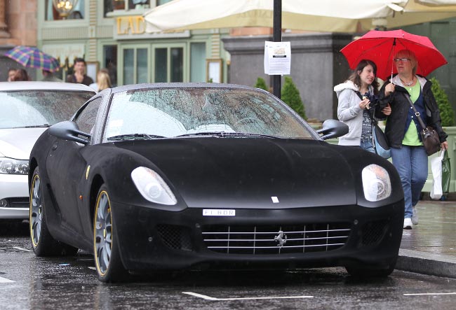 Kyseessä oli musta ferrari, jonka pintaa ei peittänytkään maali. Se oli nimittäin verhottu samettisella materiaalilla. Auto kuvattiin pysäköitynä Harrodsin luksustavaratalon parkkipaikalle.