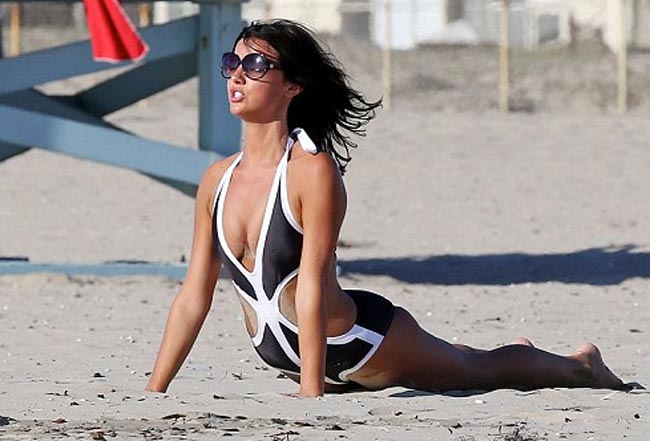 Nyt 22-vuotias Lucy on kuvattu keikistelemässä rannalla mustavalkoisissa bikineissä, jotka osoittivat neitokaisen olevan edelleen todella upeassa rantakunnossa.