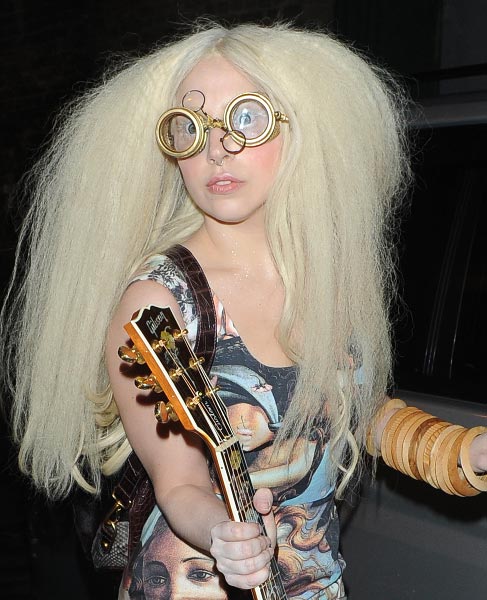 Lontoossa studiostaan poistunut Lady Gaga oli tuttuun tapaan sonnustautunut perin erikoiseen asuun ja näyttäviin laseihin, joten oli vaikea sanoa oliko asukokonaisuudessa kyse tavallisesta asusta vai Halloween-teemasta.