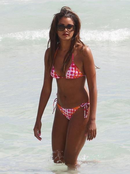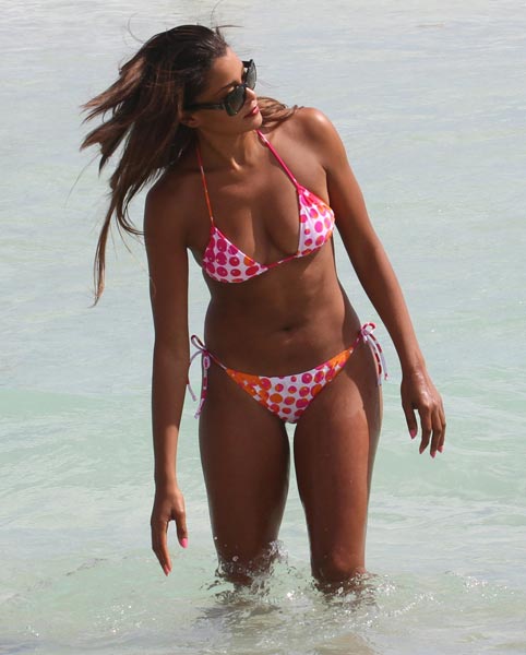 Claudia Jordan ikuistettiin eilen ystäviensä kanssa nautiskelemassa upeasta päivästä Miami Beachilla, jossa hän käänsi miesten katseet punavalkoisilla näyttävimmä bikineillään.