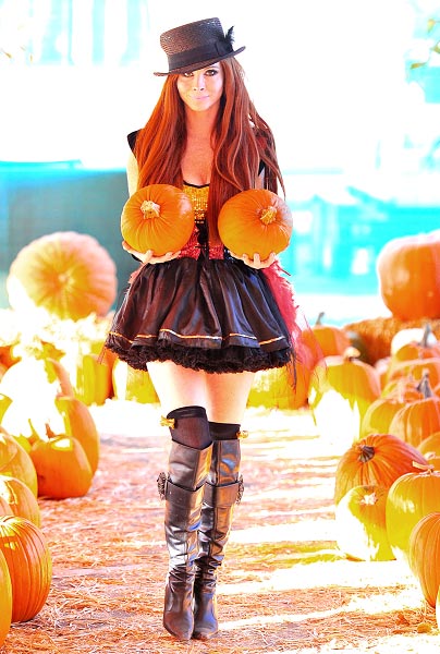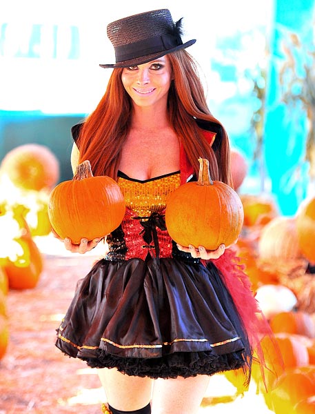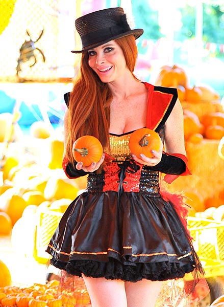 Eräs heistä on itseään 32-vuotiaaksi väittävä Phoebe Price, joka on nyt kuvattu Halloween-aiheisissa kuvissa. Jättirinnoistaan tunnettu julkkistyrkky poseeraa otoksissa vihjailevasti laajassa kaula-aukossa, pidelleen käsissä isokokoisia kurpitsoja.