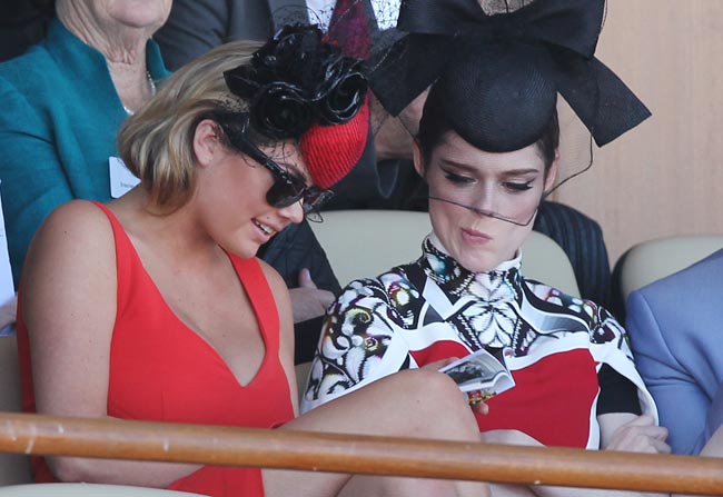 Kate Upton nähtiin erikoisvieraana Australiassa järjestetyssä Melbourne Cup -tapahtumassa, joka on maan suurin laukkaurheilutapahtuma. Tuttuun tapaansa vaaleaverikkö piti huolen siitä, että hänet huomattiin muiden vieraiden joukosta. Katella oli päällään kirkkaanpunainen, avarakauluksinen mekko ja samanvärinen, mustilla ruusuilla ja verkolla koristeltu päähine.