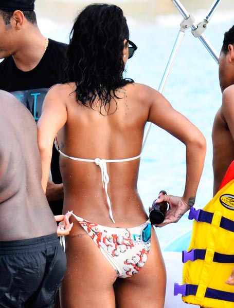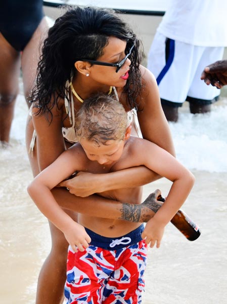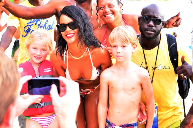 Rihanna kuvattiin rannalla nautiskelemassa hyvästä seurasta ja vesileikeistä yhdessä perheensä kanssa. Laulaja kaasutteli muun muassa vesijetillä ja ehti poseerata auliisti myös häntä piirittäneiden fanien kanssa.