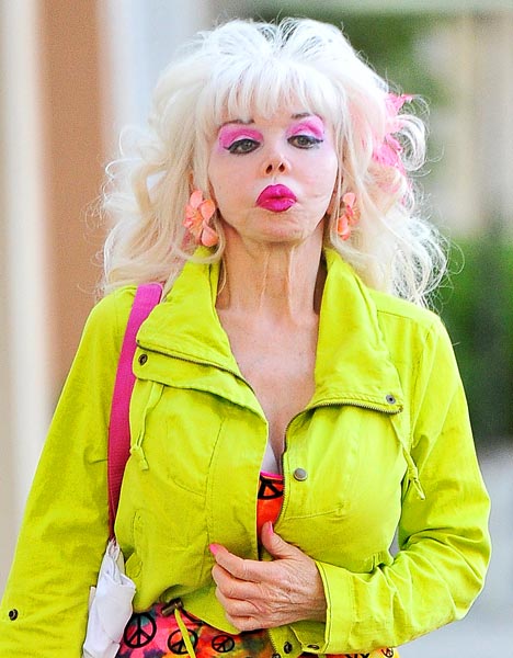 1980-luvulla miljoonien miesten seksisymboliksi noussut Angelyne ikuistettiin tänään shoppailemassa Beverly Hillsissä. Tällä kertaa hänellä oli yllään räväköiden meikkien lisäksi myös loistava kasarihenkinen neon-asu. Samalla päästään tarkastelemaan millaista jälkeä liiallisen kauneusleikkaukset voivat saada aikaan.