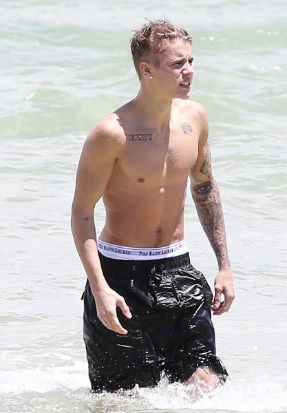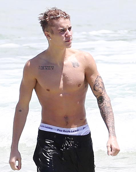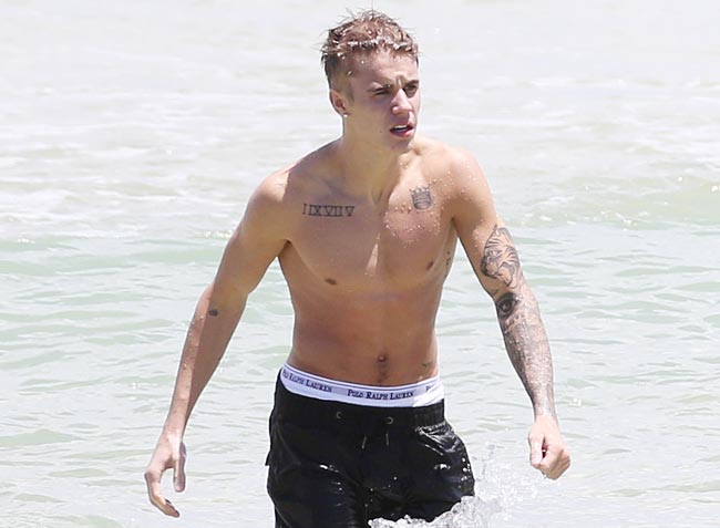 Bieber on myös ikuistettu viime aikoina lomailukuviin, sillä mies on ehtinyt keikkojen lomassa hengähtää. Äskettäin hänen lihaksiaan saatettiin ihailla Havaijilla Kauain saarella otetuista paparazzikuvista – nyt Justin uiskenteli shortseissaan Byron Bayssa, Australiassa. 19-vuotias poppari on muuttunut vuoden aikana huomattavasti miehekkäämmäksi.