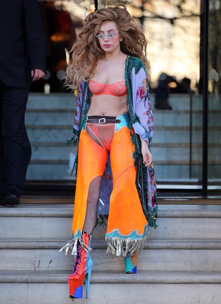 Poppari Lady Gaga on herättänyt viime aikoina huomiota verkossa julkaisemillaan kuvilla. Neitokainen esittäytyi äskettäin faneilleen Instagram-sivustolla kuvassa, jossa tähden meikit näyttivät lässähtäneen kasvoille. Nyt poptähti on lähtenyt kaupungille ilman paitaa.