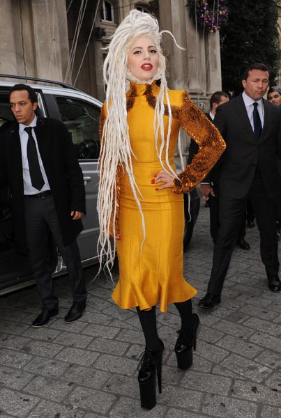 Poptähti Lady Gagan performanssi ulottuu ympäristön sijaan yleensä myös tähteen itseensä, sillä hänen asuvalintansa ovat erityisen näyttäviä ja poikkeuksellisia. Niin tälläkin kerralla, kun supertähti on ikuistettu Lontoossa.