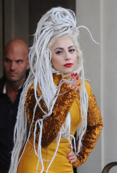 Toissapäivänä Lady Gaga pukeutui joulukuuseksi, mutta nyt asu on hieman toista maata. Hän näyttää nimittäin ottaneensa mallia hotellin siivouskomeron mopilta, koska laulajan päässä on harmaa moppimainen hiuslaite.