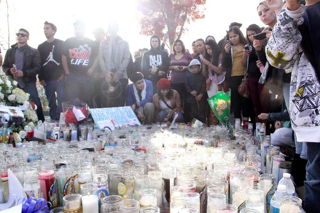 Paikalla on nyt sadoittain kynttilöitä ja muun muassa pehmonalleja ja varta vasten Walkerin ja hänen ystävänsä muistolle tehtyjä muistoesineitä.