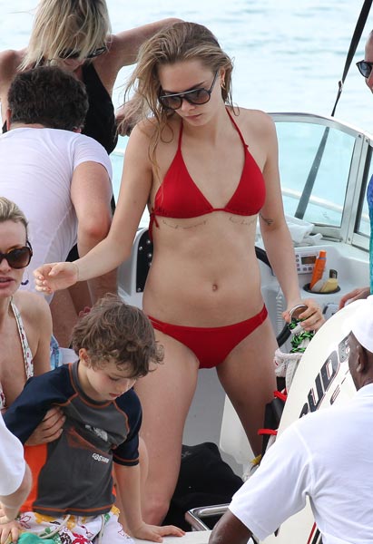 21-vuotias mallikaunotar viettää parhaillaan joulun ja uudenvuoden välipäiviä Barbadoksen maisemiin, jossa hänet kuvattiin veneretkellä. Punaisiin bikineihin sonnustautuneen huippumallin asuvalinta paljasti hänen molempien rintojensa alla oleva tatuoinnit.