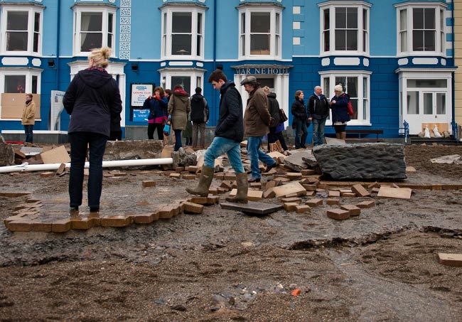 Aberystwythin kaupungin asukkaita evakuoitiin turvaan myrskyn tieltä, ja nyt rantakadulta ikuistetut valokuvat vahvistavat kuinka voimakkaasta ilmiöstä myrskyssä oli kyse. Yhteensä 100 asukasta vietti yönsä turvallisemmassa paikassa, kunnes myrsky oli ohi. Palatessaan he saivat huomata, että myrsky oli lähes tuhonnut kaupungin tunnelmallisen rantabulevardin.