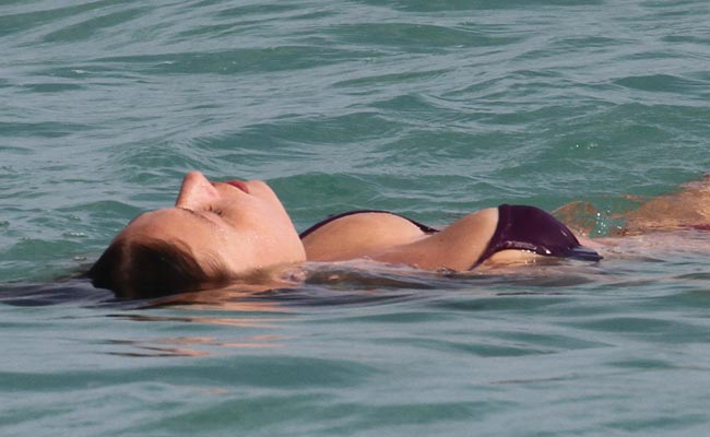 Eilen moldovalaiskaunotar nautiskeli jälleen lomatunnelmista Miami Beachin rannalla, ja hän käväisi myös pulahtamassa vesileikeissä. Mallitulokas kuvattiin myös kellumassa selällään rantavedessä.