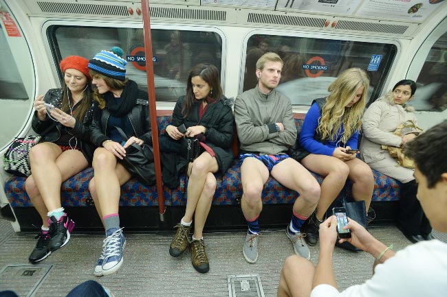 Ympäri maailmaa yli 60 kaupungissa järjestettävässä tempauksessa ihmiset riisuvat sovittuun aikaan housunsa samanaikaisesti jossain julkisen liikenteen kulkuvälineessä.