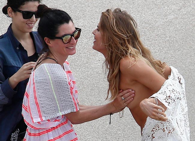 Kerroimme muutama päivä sitten kuinka Maryna kuvattiin rannalla St. Barthsin luksussaarella Vogue-lehden kuvauksissa. Rannalle on hieman vaikea rakentaa pukukoppeja ja aikataulut ovat tiukkoja, joten kuvausryhmä keksi luovan tavan pitää supermallin intiimit alueet piilossa uteliailta ja paparazzeilta. Eräs kuvausryhmän jäsen sai nimittäin tehtäväkseen peittää rinnat käsillään asunvaihdon ajaksi.