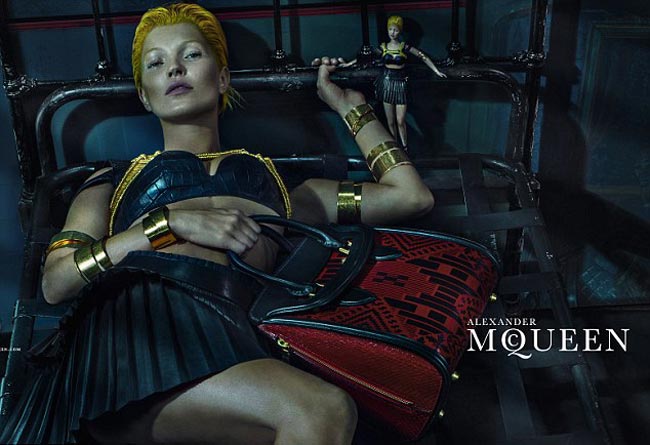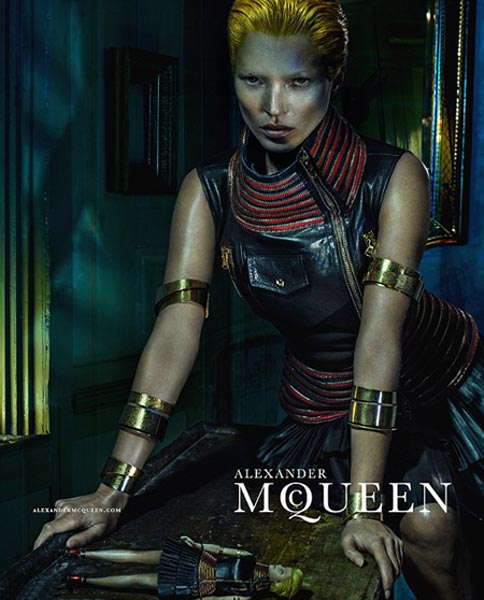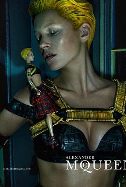Hiljattain 40 vuotta täyttänyt huippumalli nähdään nyt Alexander McQueen -muotimerkin tuoreissa mainoskuvissa. Valokuvaaja Steven Kleinin otokset uhkuvat synkkää eroottista henkeä, ja Daily Mail -lehden mukaan niiden esikuvana on toiminut 1960-luvun sarjamurhaajaelokuva Peeping Tom.