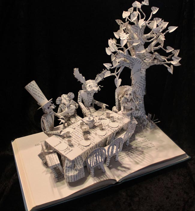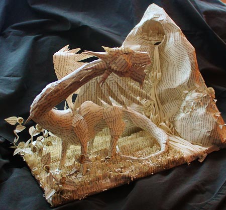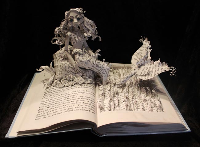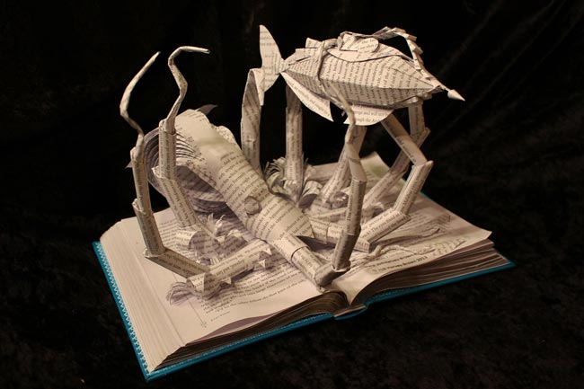 Jodi Harvey-Brown halusi leikellä ja asetella käytettyjen kirjojen sivuista sellaisia, että ne kuvastaisivat tavalla tai toisella tiensä päähän tulleen kirjan sisältöä. Kirjoista on loihdittu muun muassa tunnettujen fantasiakirjojen hahmoja, kuten lohikäärmeitä, laivoja ja merenneitoja.