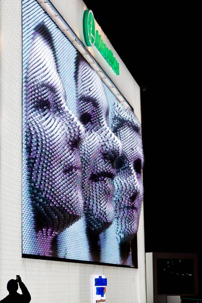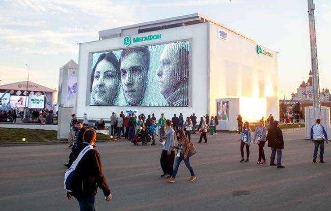 Olympiapuistossa sijaitsevan MegaFon-paviljongin seinässä nähdään poikkeuksellisen upea näky. Kyseessä on 3D-seinä, joka toistaa 170 000 kisavieraan kasvoja kolmiulotteisesti ja erittäin tunnistettavasti, Splash News uutisoi. Seinän teos koostuu 11.000 sylinteristä, jotka liikkuvat ja tekevät seinään kasvokuvia. Projektin on suunnitellut englantilainen Asif Khan.