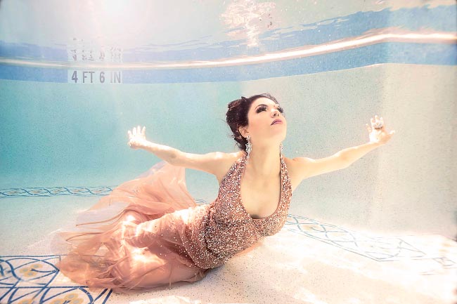 Realitytähden imagostaan huolimatta Adriana De Moura todistaa nyt osaavansa poseerata myös tyylikkäissä ja taiteellisissa kuvissa. Glamour-henkisissä uusissa otoksissa latinokaunotar nähdään muun muassa veden alla, päällään avarakauluksinen mekko.