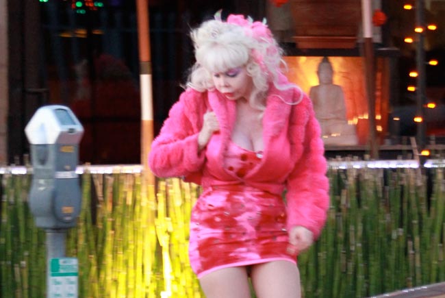 Tällä kertaa Angelyne kuvattiin Hollywoodissa melko räikeässä asussa noutamassa kahvia.