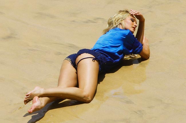 Eteläafrikkalainen huippumalli Candice Swanepoel nähtiin taannoin Brasilian Vogue-lehden kansikuvassa minikokoisissa bikineissä jalat haarallaan. 25-vuotias vaaleaverikkö on sittemmin jakanut Instagram-tilillään uusia otoksia itsestään. Eilen hän vilautteli kuvauksissa.