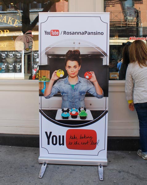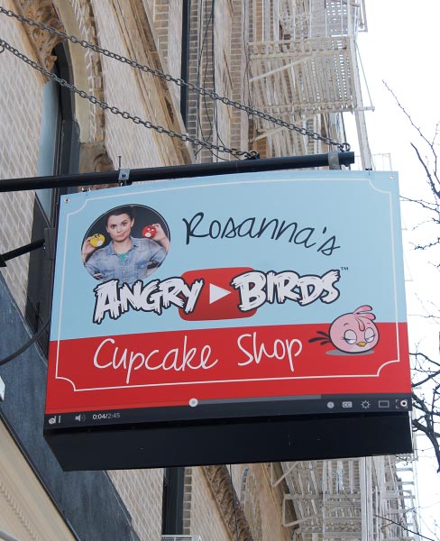 Rosanna Pansino myy kahvilastaan Angry Birds -muffinsseja ja siinä samalla myös paljon muita hittipeliin liittyviä oheistuotteita. YouTube-menestyksen myötä tieto nettijulkkiksen kahvilasta levisi nopeasti, ja menestys näytti olevan heti alussa melkoinen.