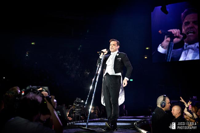 Maailman suosituimpiin miesartisteihin lukeutuva poptähti Robbie Williams konsertoi eilen jälleen Suomessa loppuunmyydyllä areenakeikalla. Stara oli paikalla tallentamassa upeat keikkatunnelmat kuviksi. Supertähti nousee samalle lavalle myös tänään maanantaina.