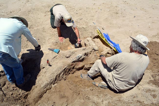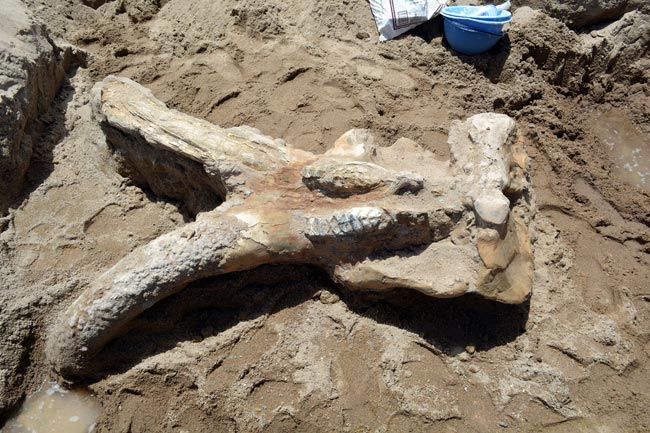 Elephant Butte Lake State Park -luonnonpuistossa seikkaillut polttariseurue huomasi maassa luunpalasen, ja ryhtyivät tutkimaan sitä tarkemmin. Pian he huomasivat, että kyseessä olikin vain jäävuoren huippu, ja että maan alta löytyikin noin kolmemetrinen esihistoriallinen mammutin pääkallo.