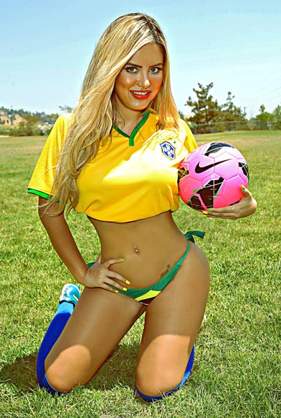 Brasiliassa on syystäkin maansuru kotijoukkueen surkean menestyksen vuoksi. Vielä äskettäin jopa paikalliset mallikaunottaret poseerasivat innoissaan tukeakseen kotijoukkuetta, mutta tuki ei lopulta auttanut Brasiliaa mitaleille. Eräs kaunottarista on nykyisin Los Angelesissa asuva brasilialaissyntyinen Camilla Gimenez, joka keikisteli näyttävästi futisteemaisissa valokuvissa Brasilia-bikineissä.
