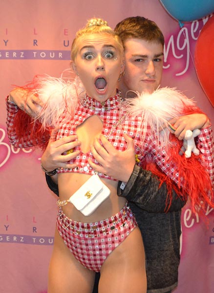 Staran kilpailuvoittaja pääsi poseeraamaan yhteiskuvassa idolinsa kanssa, mutta nyt Yhdysvalloissa fanit ovat päässeet aivan toisenlaisiin puuhiin. Julkisuuteen vuotaneiden fanikuvien mukaan fanit pääsivät nimittäin New Yorkin Nassau Colliseumin takahuoneessa kourimaan poptähden rintoja kesken fanitapaamisen. Lisäksi fani pääsi myös suutelemaan Cyrusia.