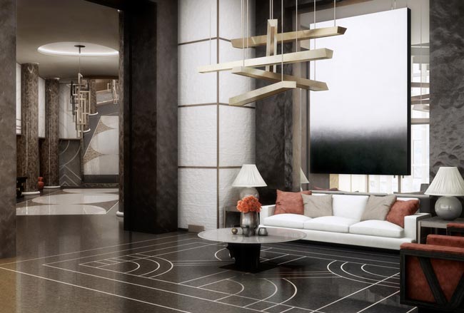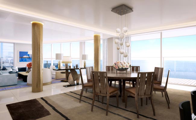 Asunnossa on 3.300 neliötä viidessä kerroksessa, ja se sisältää muun muassa oman vesiliukumäen, joka yhdistää kahdessa eri kerroksessa olevat tanssilattiat toisiinsa. Luonnollisesti pilvenpiirtäjän katolla on myös suurikokoinen uima-allas. Yhteensä Tour Odeon sisältää 70 luksusasuntoa kaikkine palveluineen ja yksityiskuljettajineen.