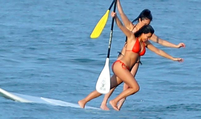 Nyt Kim on kuvattu viettämässä lomaansa Meksikossa yhdessä ystäviensä kanssa. Eilen neitokaiset nähtiin suppailemassa rannalla, jossa Kardashian otti aurinkoa punaisissa bikineissä.