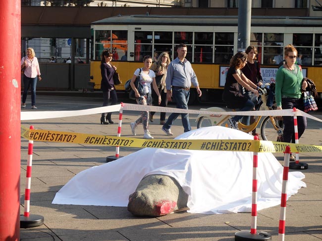 Luonnonsuojelujärjestö WWF järjesti Italian Milanossa tempauksen, jossa he lavastivat Piazzale Cadornan torille murhapaikan, jonka uhrina oli sarvikuono. Luonnonsuojelijat olivat pukeutuneet murhatutkijoiksi ja valkoisen lakanan alla makasi tapettu sarvikuono, jonka verisestä päästä oli sahattu irti sarvi.