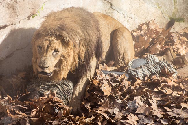 Mies sai leijonan kimppuunsa nopeasti aitaukseen tunkeuduttuaan, ja hän sai iskussa vakavia vammoja muun muassa päähänsä. Leijona puri miestä välittömästi, jolloin tämä menetti tajuntansa. Iskun jälkeen leijona raahasi miehen saaliinaan leijonanluolaan ja ryhtyi tutkimaan miehen reppua.