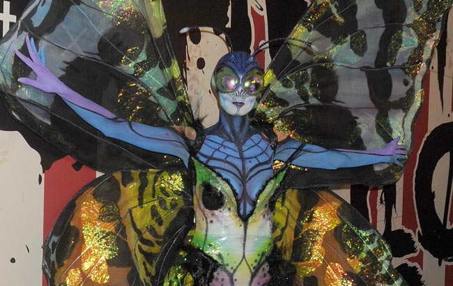 Heidi Klum tunnetaan myös näyttävistä naamiaisasuistaan. Tänä vuonna hänet nähtiin New Yorkissa vietetyissä juhlissa värikkääksi perhoseksi pukeutuneena. Puku on niin yksityiskohtainen, ettei mallikaunotarta ole tunnistaa sen alta.
