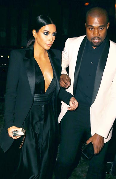 Eilen julkkispari osallistui John Legendin synttäribileisiin New Yorkissa. Kim oli pukeutunut bileisiin poikkeuksellisen muhkealla kaula-aukolla varustettuun mustaan asuun. Kanye West oli sen sijaan mustavalkoiseen smokkiin ja mustaan kauluspaitaan.