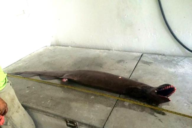 Tutkijoiden mukaan kyseessä on yli kaksimetrinen laji, joka on näyttänyt samalta noin 80 miljoonaa vuotta. Nyt kala jäi saaliiksi noin 60 metrin syvyydessä, kun normaalisti ne elävät 1.500 metrissä.