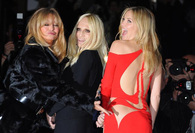 Äskettäin sinkkuuntunut Kate Hudson nautti saamastaan huomiosta muotitapahtumassa. Goldie Hawnin ja muotisuunnittelija Donatella Vercacen seurassa viihtyneellä Hudsonilla näytti olevan kaikin puolin onnistunut ilta. Tähtönen voi olla varma, että huomiota herättävästä puvustaan puhutaan vielä pitkään.