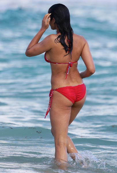 Eilen Padma Lakshmi kuvattiin pitkästä aikaa rantakuviin hänen nauttiessaan meren vilvoittavista aalloista Miami Beachin rannalla. Muutama vuosi sitten myös alastonkuvissa poseerannut kaunotar oli sonnustautunut punaisiin bikineihin.